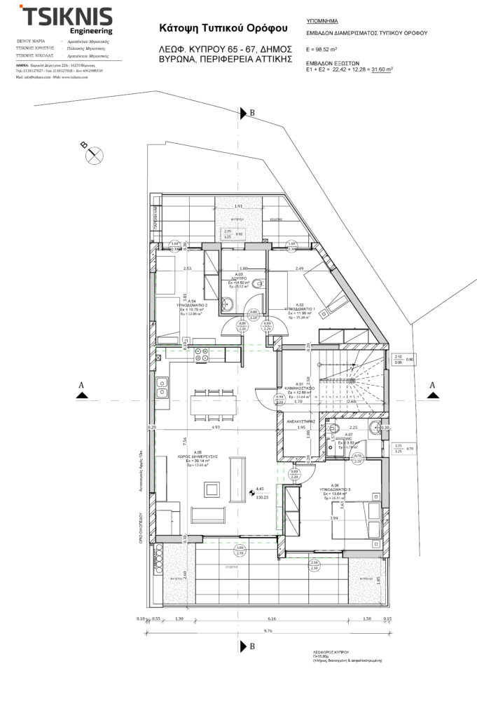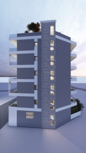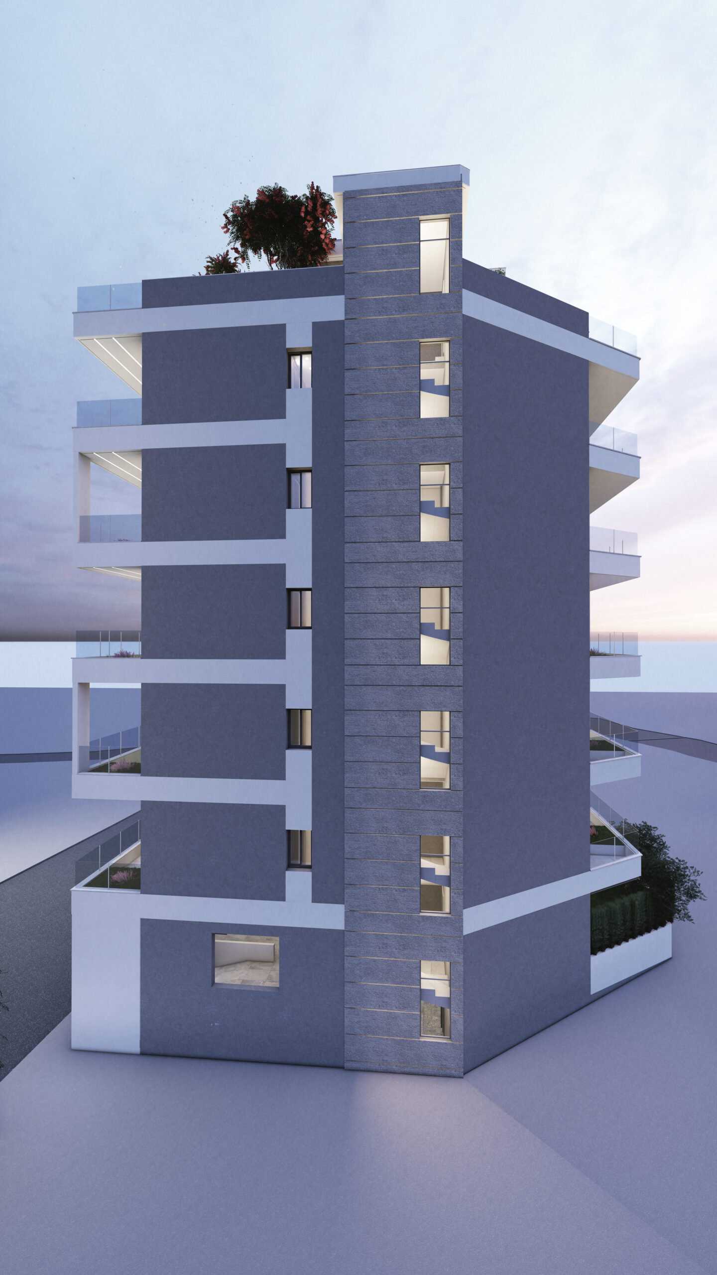 Το έργο αποτελείται από 6 οροφοδιαμερίσματα, υπόγειο και pilotis. Τα διαμερίσματα καλύπτουν τις ανάγκες μίας 4μελούς οικογένειας με πληθώρα παροχών, ηλιακού φωτός και αερισμού.